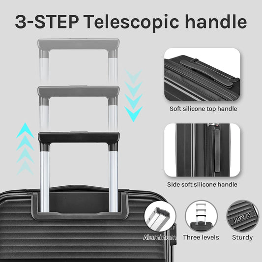 Joyway 3-Piece Carry-On Luggage Set with Swivel TSA Lock and Leather Carry Bag TR009