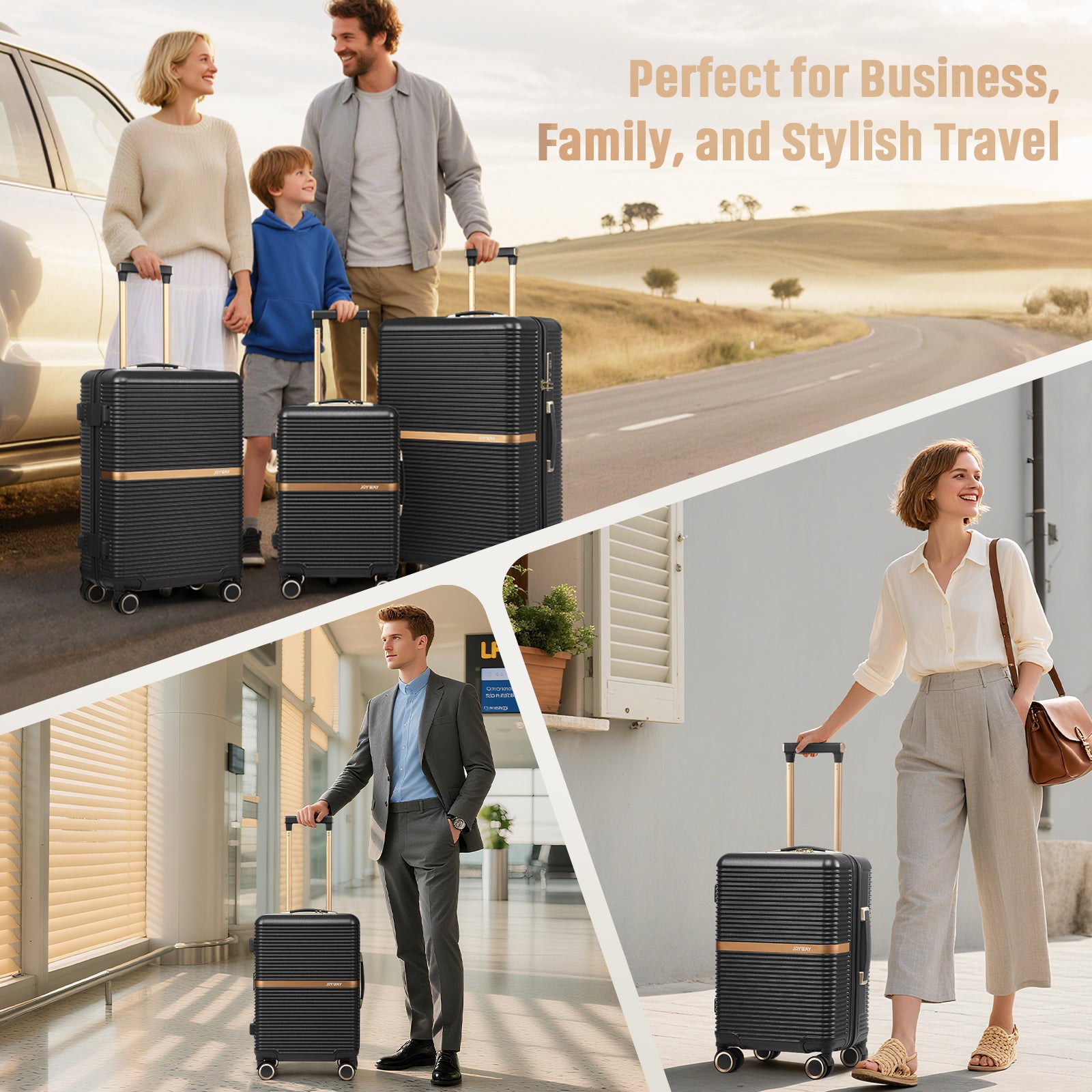 Joyway 3 Piece Luggage Set (20/24/28 Inch) – Lightweight ABS Hardshell Suitcases, Spinner Wheels, TSA Lock, Durable Travel Luggage PF001