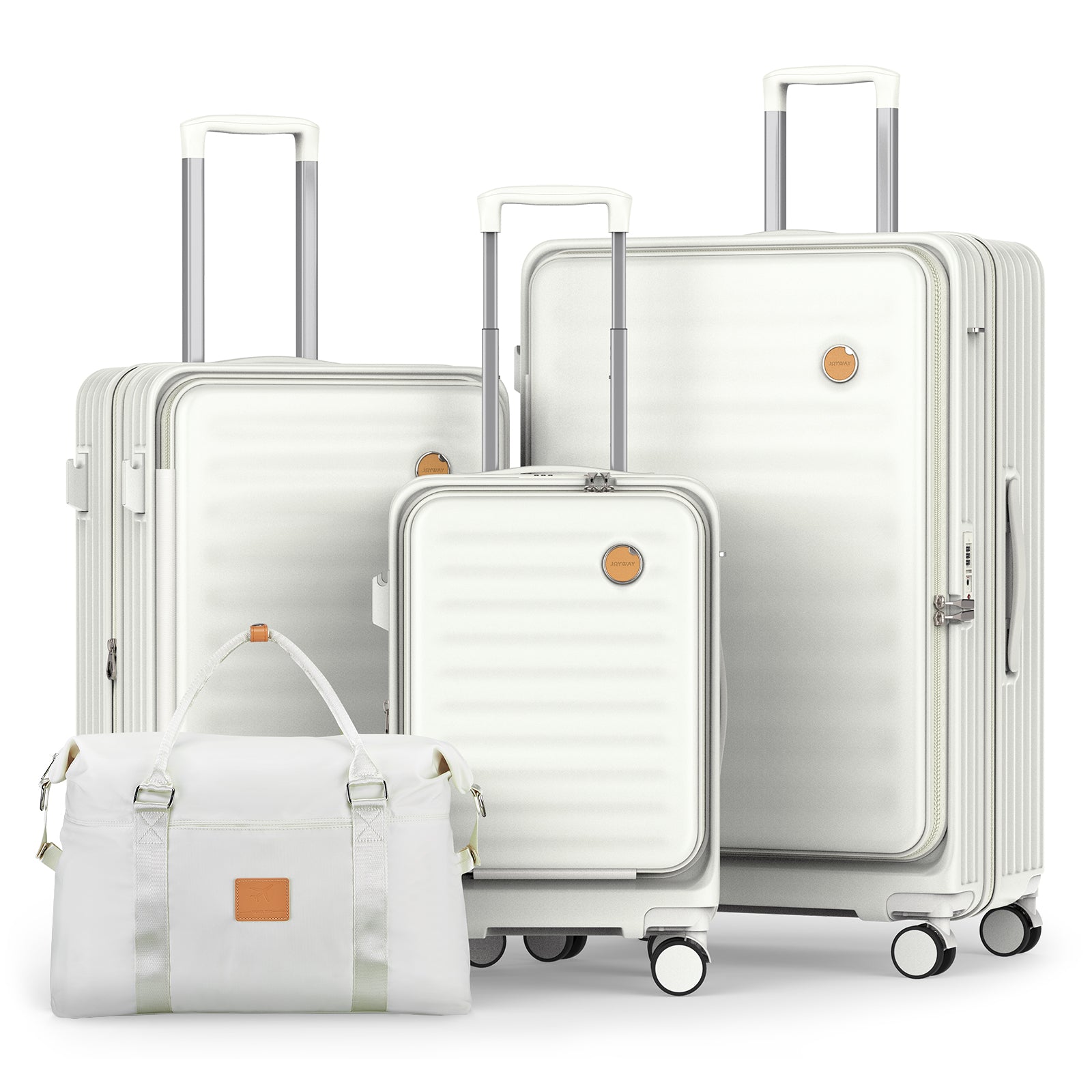 • ✅【High-Quality Hardshell Front Opening Luggage Set】This carry-on luggage is crafted from premium polycarbonate (PC) material, which is more durable than ABS+PC. Its surface features a wave texture, effectively preventing scratches and maintaining the suitcase's aesthetic appeal even after long journeys. The entire luggage set weighs only 33.79 pounds, making it the ideal choice for extended family trips and business travel.