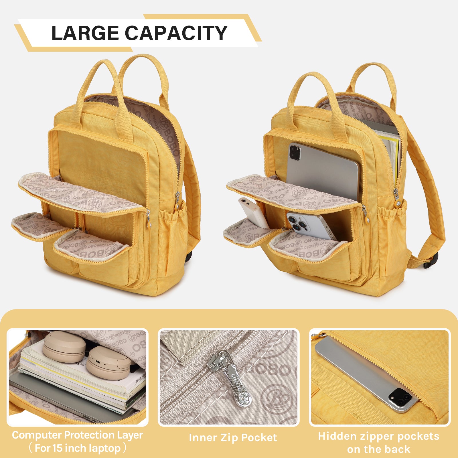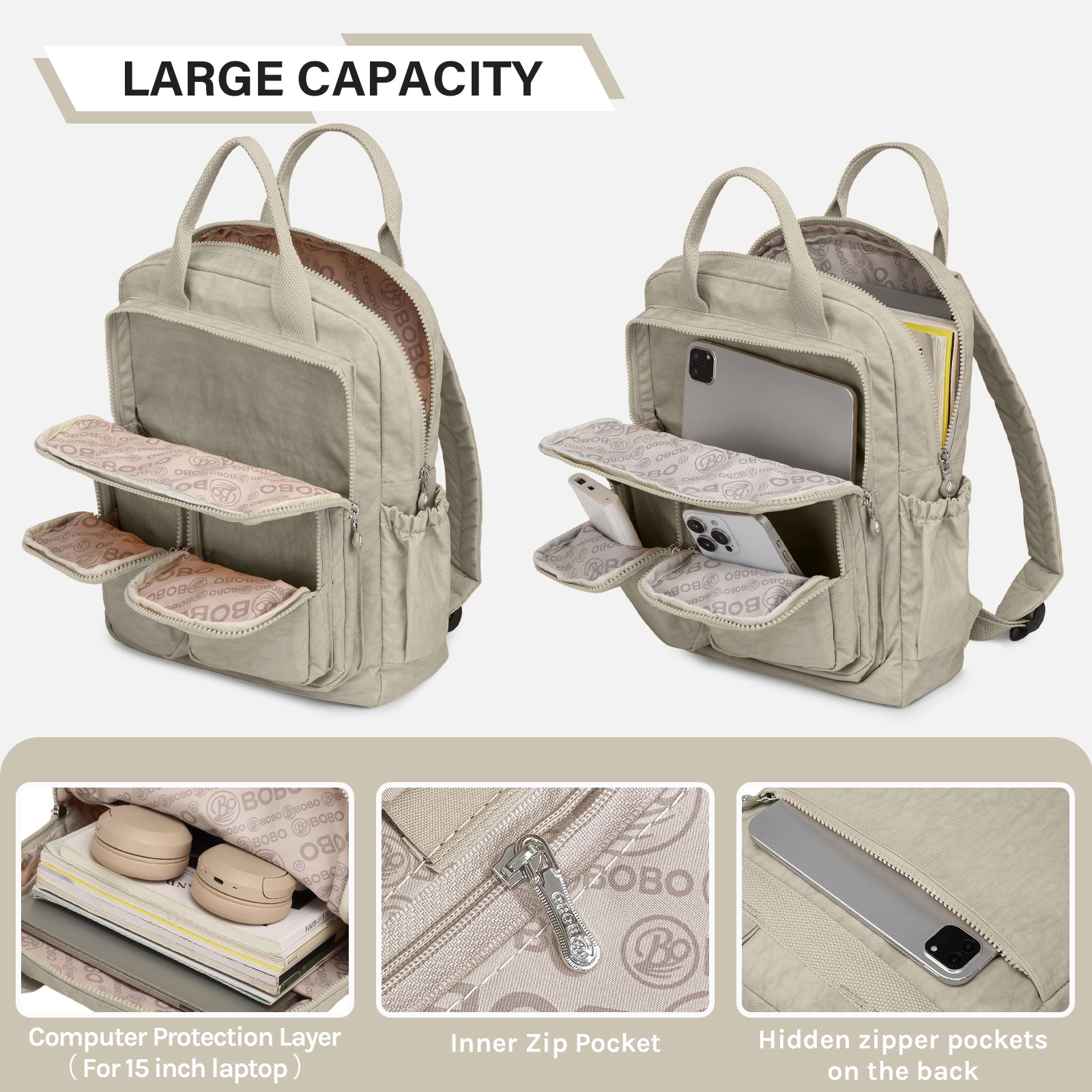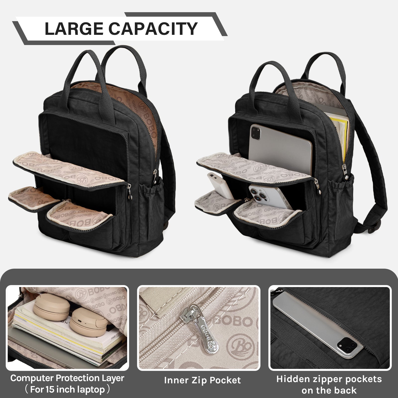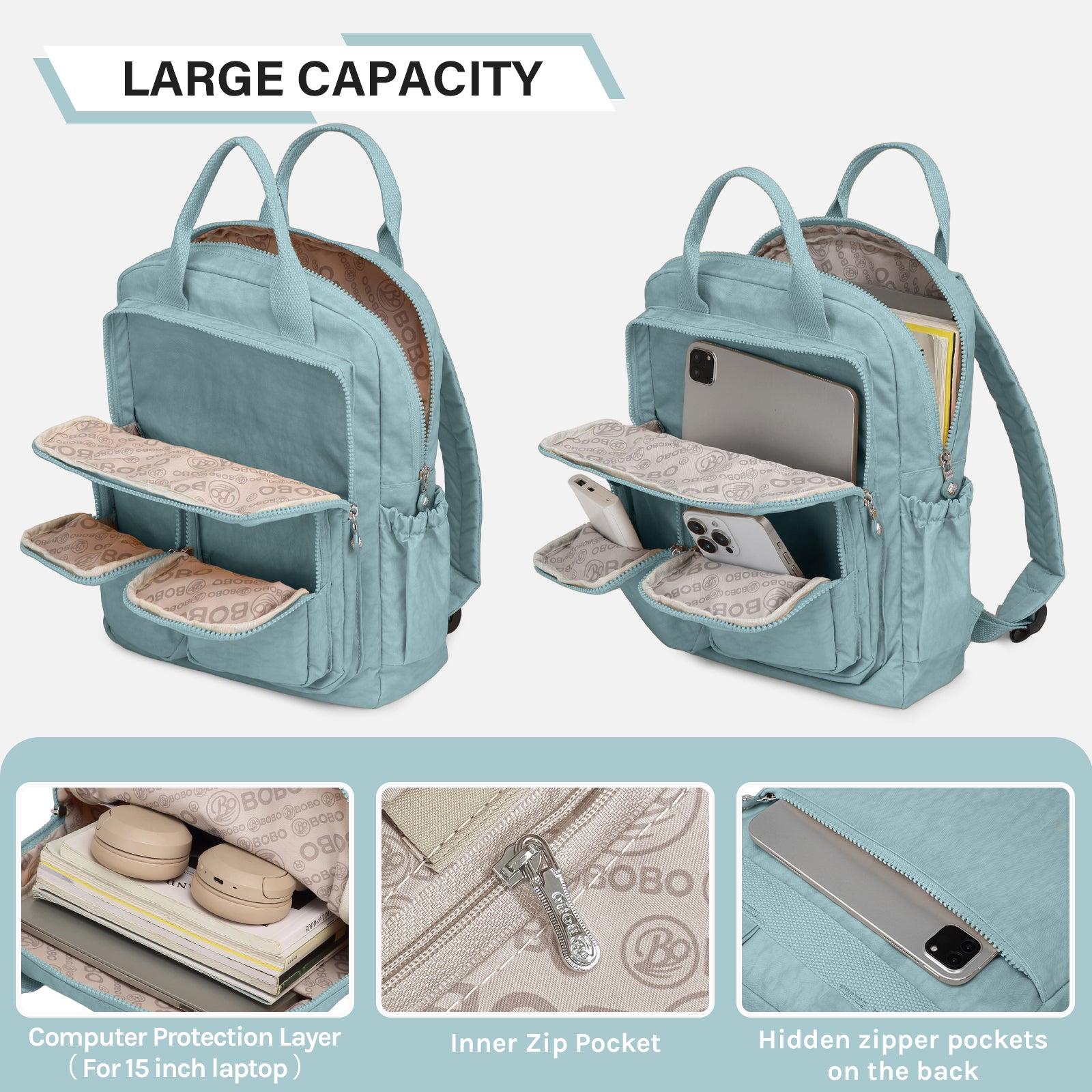 - 15-Inch Laptop Compartment: Separate padded sleeve fits most 13" laptops or tablets securely.