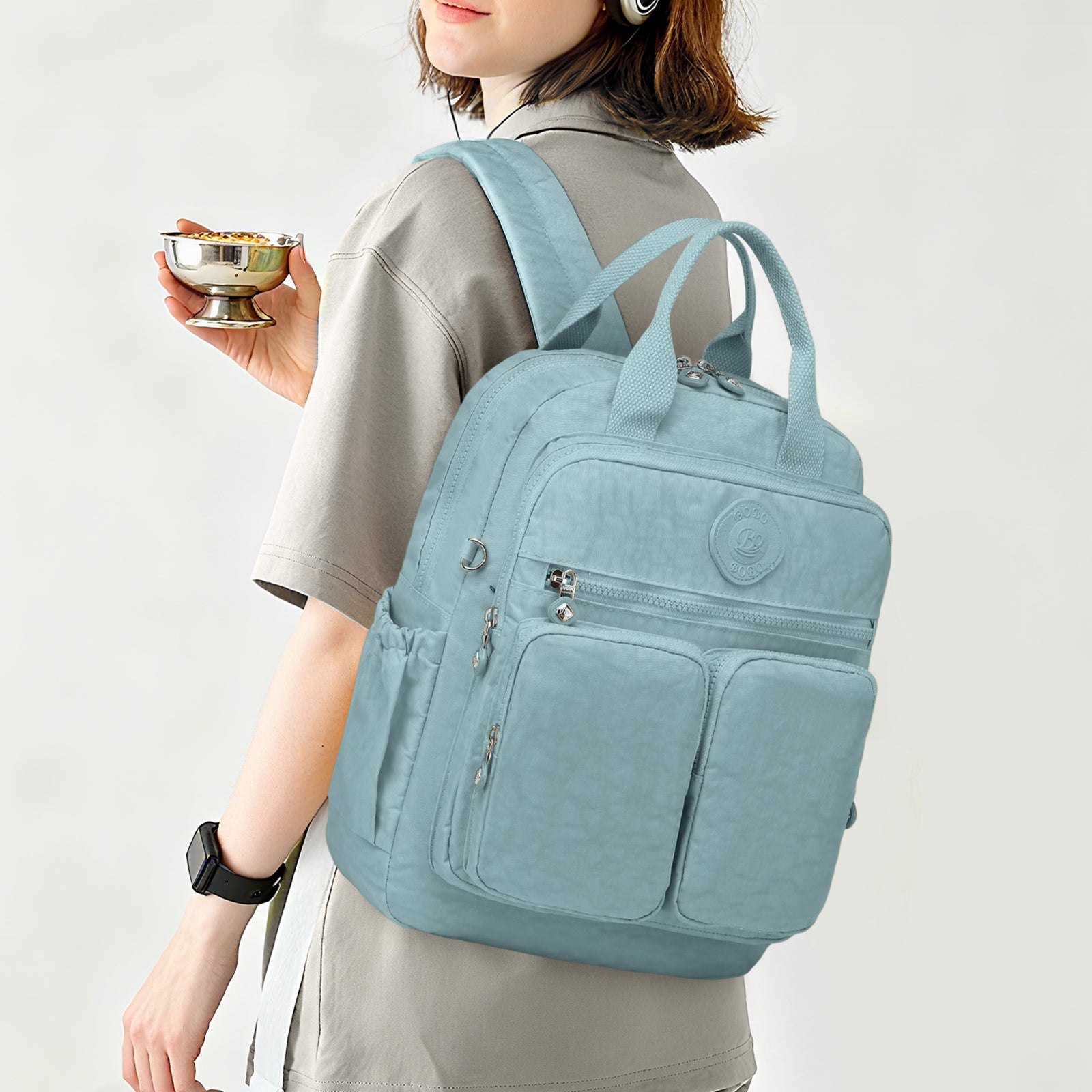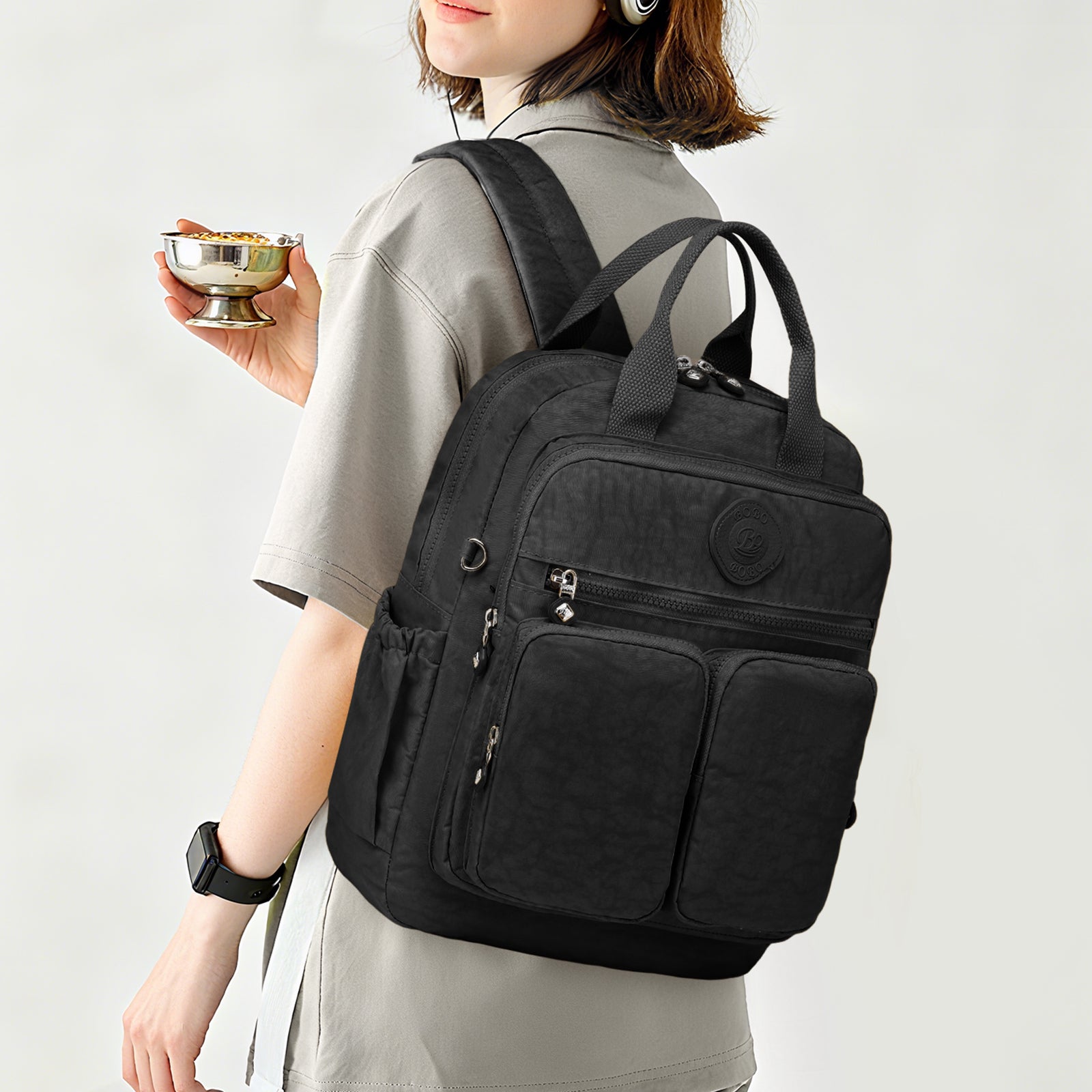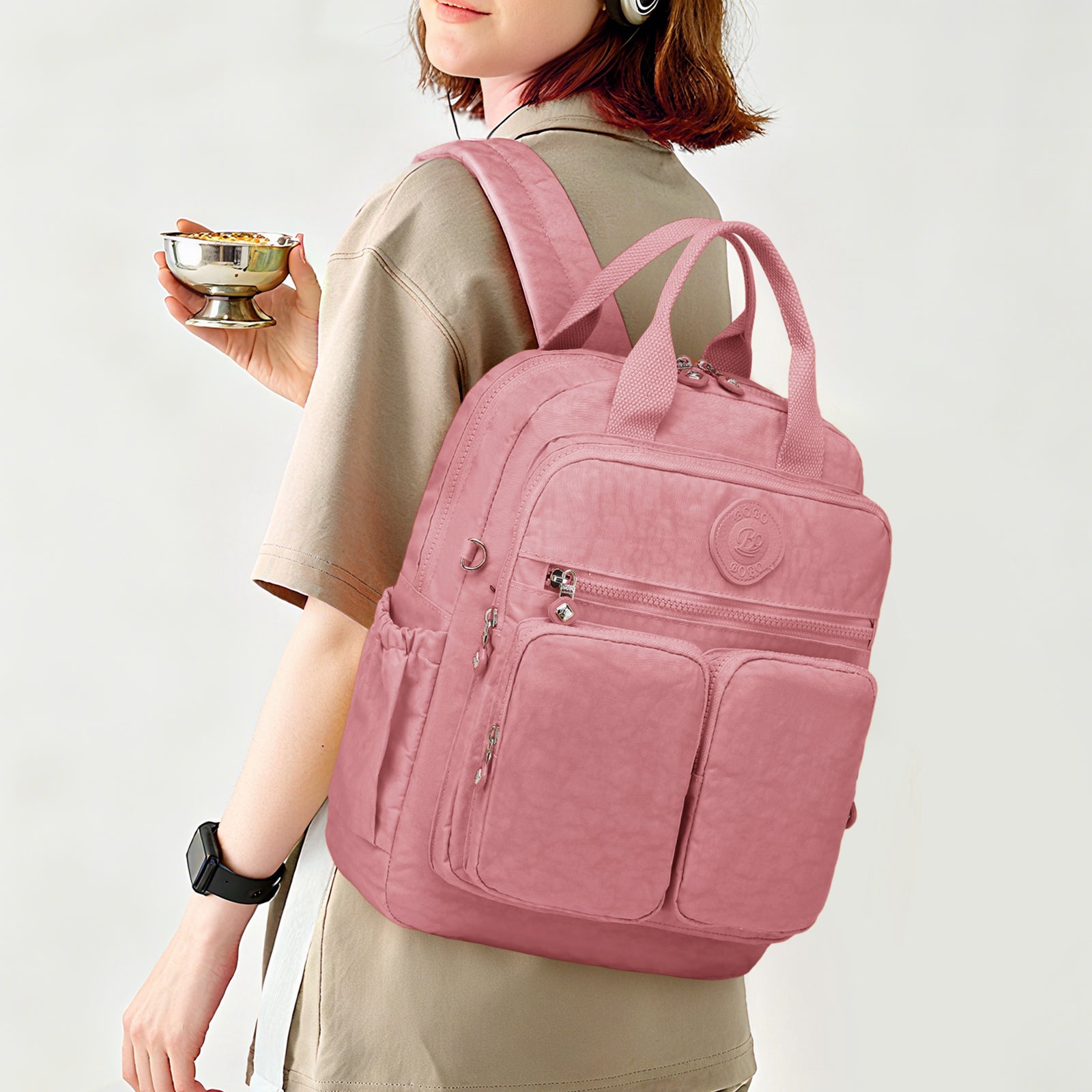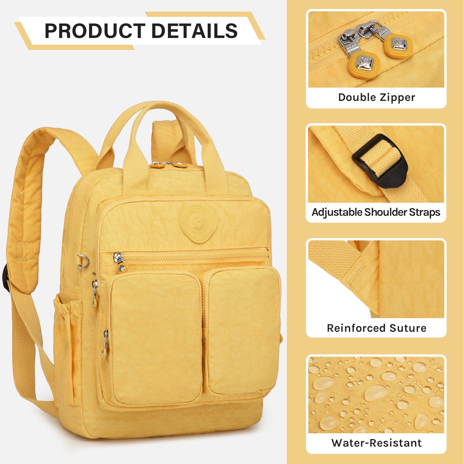 - Multi-Pocket Design: Includes front zipper pockets, side bottle holder, and large main compartment for organized storage.